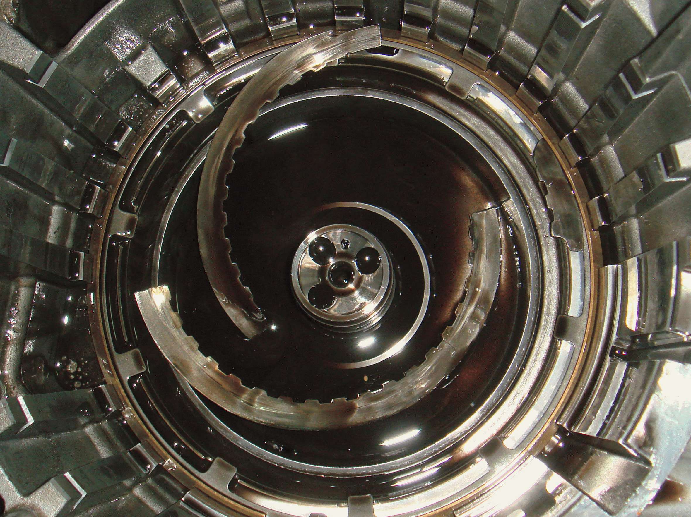:2012年7月12日,本车在行驶途中突然出现了发动机空转,变速箱挂挡不走车的现象,故障灯也亮了,车运到 我店经检查为变速箱内部零件损坏,拆解后发现一高速挡圆圈状离合片断成了三截,并磨损了变速箱壳体和其他部件,具体原因不祥。 通用这款变速箱无故损毁的原因惊人的一致,都出现了类似的离合片断成几截的现象,而且故障往往发生在只行驶了几万公里的车辆中。